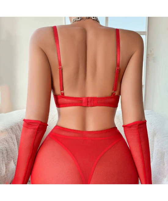 New Fashion Sexy Lingerie Sets Erotic Mesh Open Chest Love Chain Underwear for Women High Quality